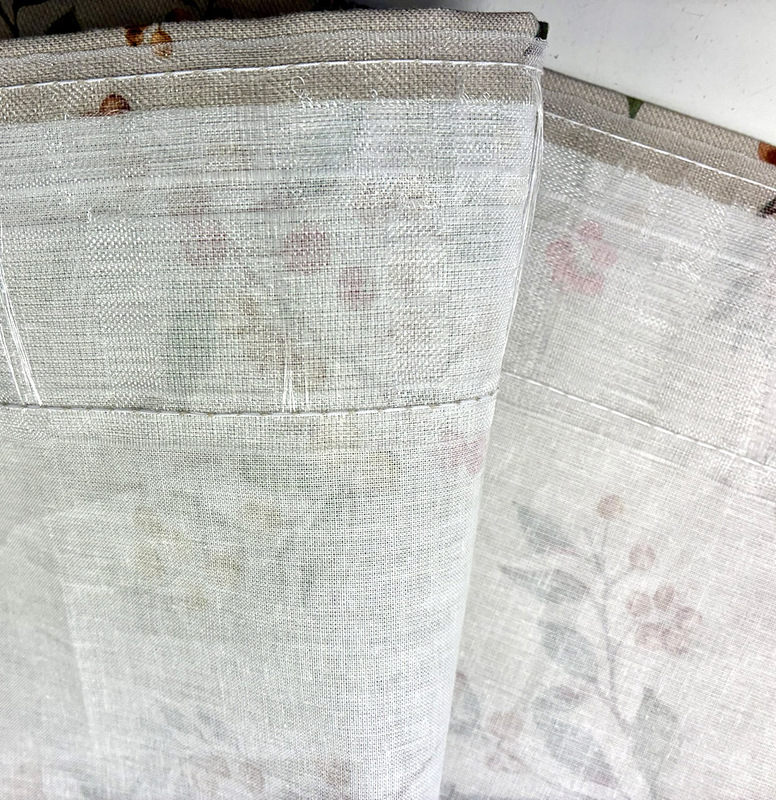 Metervaran har monterad ultiband som gör att du kan trä gardinen direkt på stången, eller använda fingerkrokar mm