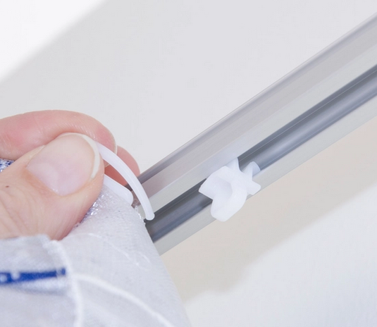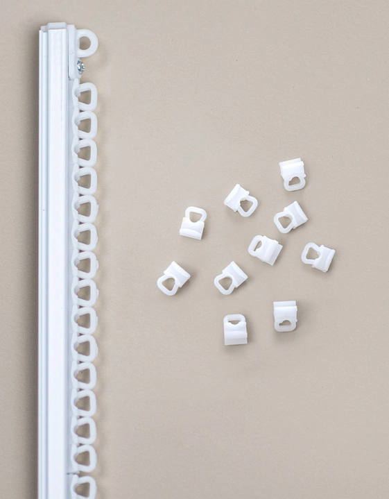 U-glid för upphängning av gardin i skena. 10 st i förpackningen.