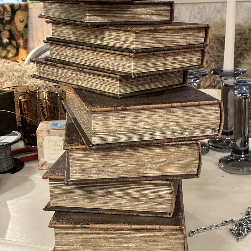 Boklåda med antik finish. I bokhyllan kan den tas som en vanlig gammal bok och är då ett perfekt görmme för diverse saker