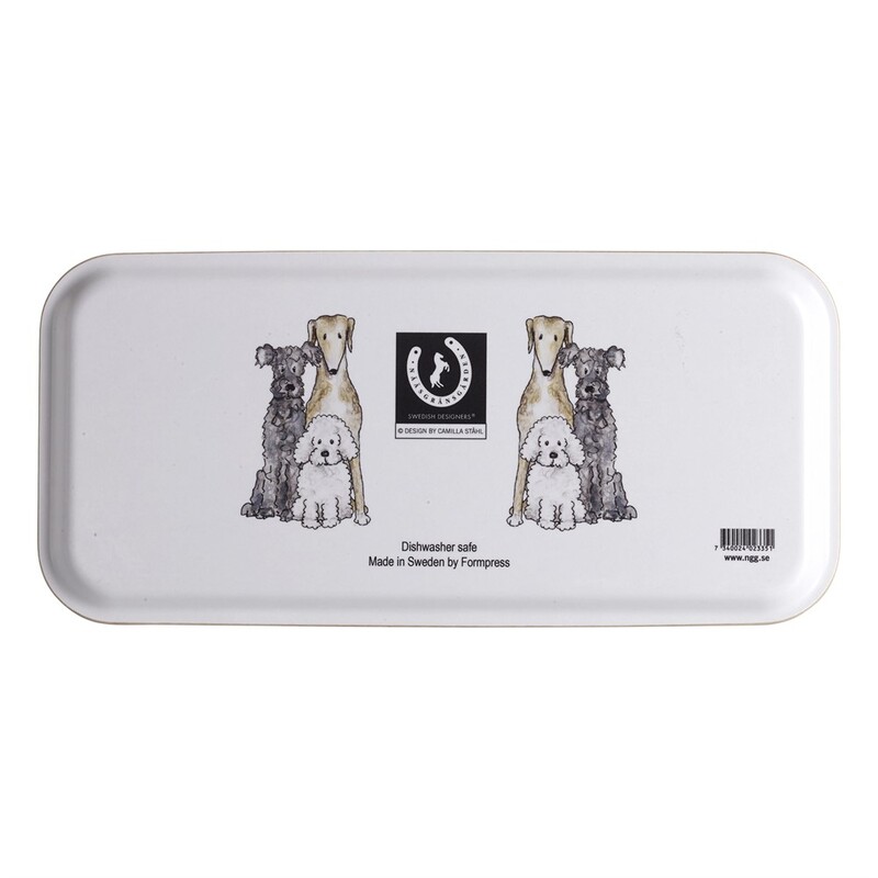 Mönstret på den härliga brickan visar en härlig blanding utav olika hundar, Illustrerad och designad av Camilla Ståhl. En perfekt present till hundvännen! Brickan är tillverkad av pressad lager av björkfaneer utav Formpress på Öland. Tål diskmaskin.L32, B15cm