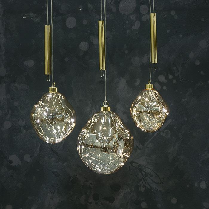 Hem / Inredning & dekoration / Lampor / Glasboll bärnstensfärgad med Led slinga 10cm i diameter
