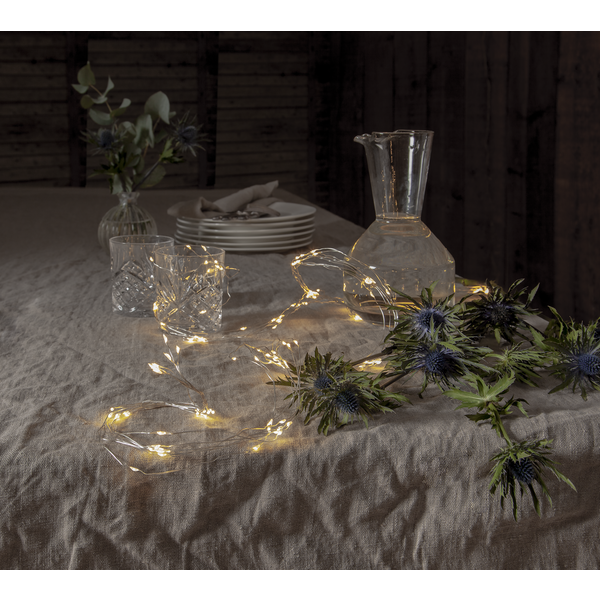 Anslutningskabelns färg Transparent Produktkabelns färg Silver Ljusfärg Daylight Bredd/längd (cm) 140,00 Höjd (cm) 1,00 Djup (cm) 1,00 Användningsområde Inomhus Ljuskällor 125 Ljuskälla ingår Ja Typ av ljuskälla LED Sockel Ej utbytbar Färgtemperatur (K) 2800 Ljusflöde (lm) 92 Lystid (h) 7000 Total effekt (W) 1,50 Transformator 4,5V DC 2,1W IP20 Euro-kontakt Spänning 4,5V DC Anslutningskabelns längd (cm) 300 Anslutningskabel-specifikation PVC kabel Avstånd mellan lampor (cm) 10 IP-klass IP20