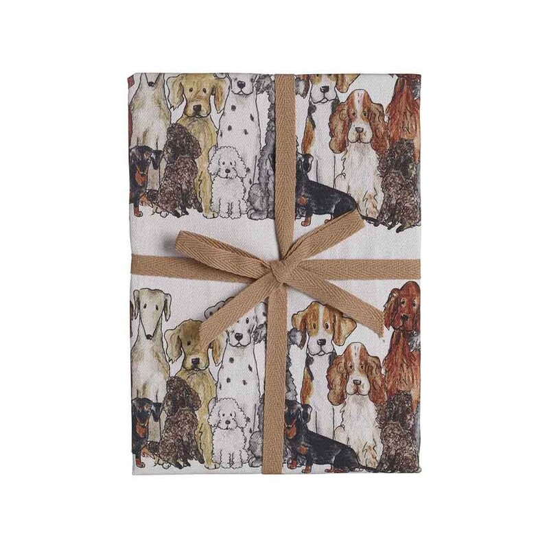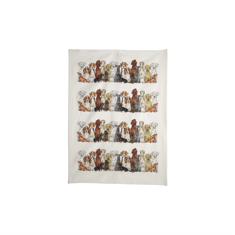 Kökshandduk med Camilla Ståhls hundar. Handduken är tillverkad av återvunnen bomull.