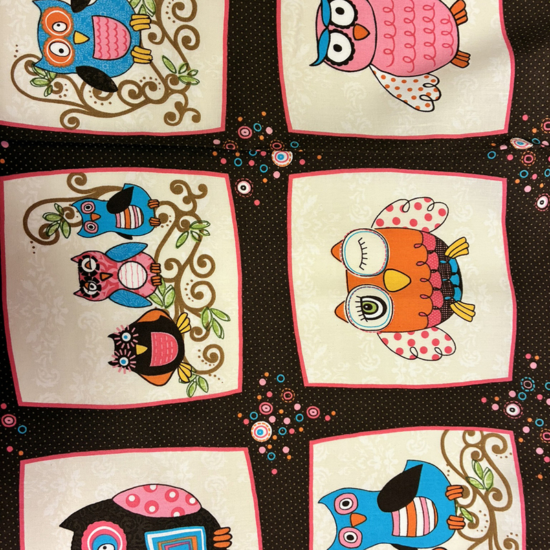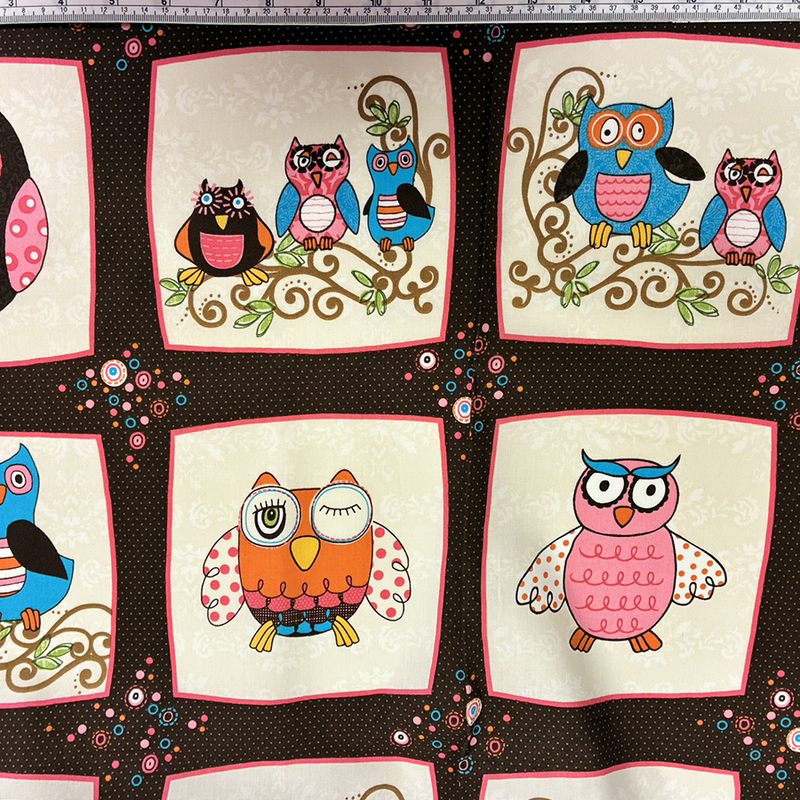 Hem / Tyg / Tygsorter / Bomullstyg / Bomullstyg i retrostil med Ugglor ,rosa