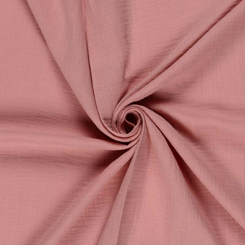 Mjuk och härlig muslintyg i en dov och vacker rosa nyans. Passar till mycket såsom blusar, babykläder, klänning filtar mm